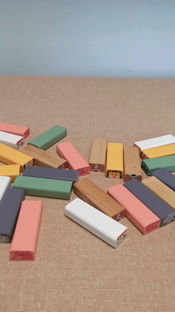 Tour branlante avec jeu d'animaux allie plaisir et défi dans un jeu en bois coloré. Empilez, équilibrez et jouez avec les blocs décorés d'illustrations d'animaux adorables. Chaque coup demande patience et précision, avec une touche joyeuse !