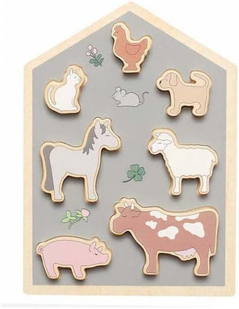 Le puzzle des animaux de la ferme est un puzzle en bois joyeux qui permet aux enfants d'apprendre à reconnaître les animaux de manière ludique, de développer leur concentration et de renforcer leur motricité fine. Les pièces solides sont parfaites pour les petites mains et s'insèrent dans les rainures de la planche de la ferme — une combinaison idéale de apprentissage, découverte et plaisir.
